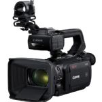 The Canon XA50 Professional UHD 4K Camcorder is a compact, lightweight camera featuring UHD 4K capture, a 1" CMOS sensor, two XLR audio inputs, and one mini-HDMI output which fits right into the ENG category for documentary or journalism-style productions.