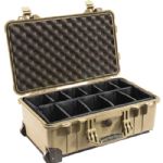 The Pelican 1514 Carry On 1510 Case with Dividers (Desert Tan) is an unbreakable, watertight, airtight, dustproof, chemical resistant and corrosion proof hard case used to carry any kind of equipment that needs to be protected from the elements. It is made of Ultra High Impact structural copolymer that makes it extremely strong and durable. It has a 0.25" (6.4mm) neoprene o-ring, and includes an automatic purge valve for quick equalization after changes in atmospheric pressure. It has a hinged case with double ABS latches that seal perfectly and padlock protectors that provide added strength and extra security against cutting and theft.