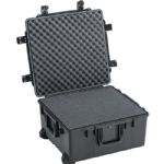 The Pelican iM2875 Storm Trak Case with Foam (Black) is an injection-molded case made of HPX high performance resin, that is virtually unbreakable, dent-resistant and shatter-resistant. It is tough, rugged, lightweight, airtight and watertight. There is a permanently attached Vortex valve that automatically adjusts air pressure without letting in water, and won't unscrew from the case. Press & Pull latches open with the push of a button, yet stay closed securely under impact or stress. The case has unbreakable molded-in hasps that allow the addition of standard size padlocks. It has hinges with integrated feet that hold fast under impact, and create a flat surface for upright stability. It is carried by three double-layered, soft-grip, solid-core handles, lightweight retractable, telescoping handle and rugged in-line wheels.